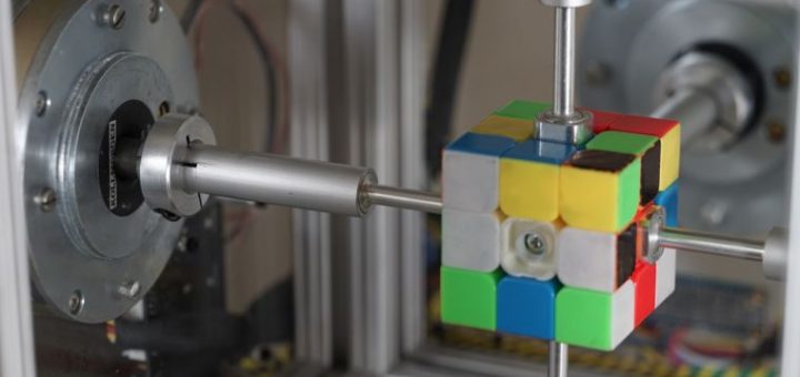 Rubik’s Cube record.Hardware hackers Ben Katz and Jared Di Carlo have smashed the previous record for solving the Rubik’s cube robotically. Their machine solved the puzzle in 0.38 seconds—a 40-percent improvement over the previous record of 0.637. « We noticed that all of the fast Rubik’s Cube solvers were using stepper motors and thought that we could do…