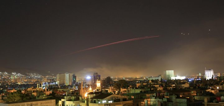 Updated April 14, 2018 15:45:03 Photo: The Damascus sky lights up with missile fire as the US launches an attack on Syria. (AP Photo: Hassan Ammar) Related Story: Live: US, UK and France launch ‘one-time shot’ against Syrian chemical weapons plants Related Story: US says Syria did use chemical weapons to kill civilians, Russia claims…